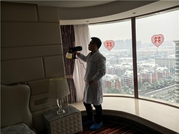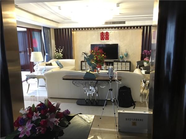 客廳大大的喜字!空氣治理專員在客廳進(jìn)行檢測!