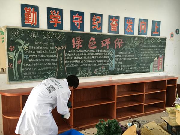 我們發(fā)現(xiàn)教室的黑板報(bào)上學(xué)生寫的都是對(duì)綠色環(huán)保環(huán)境的強(qiáng)烈愿望!