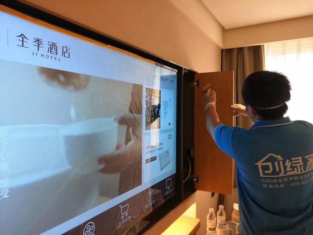 經(jīng)過(guò)檢測(cè)全季酒店室內(nèi)空氣不合格,就立馬找到除甲醛專業(yè)品牌創(chuàng)綠家環(huán)保,進(jìn)行室內(nèi)空氣治理,在施工人員幾個(gè)小時(shí)的治理下,辦公室空氣煥然一新,清新的空氣讓酒店方非常滿意。