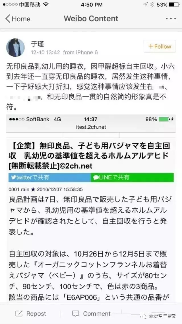 日前,無印良品日本官網(wǎng)發(fā)出一則自主回收通知,稱一款在售嬰幼兒用睡衣因檢測出甲醛超標(biāo)急需召回: