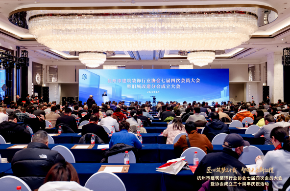 2026年1月21日,杭州市建筑裝飾行業(yè)協(xié)會(huì)七屆四次會(huì)員大會(huì)暨舊城改造分會(huì)成立大會(huì)在杭州黃龍飯店隆重召開(kāi)。本次大會(huì)以“匠心筑夢(mèng)三十載 智領(lǐng)未來(lái)新征程”為核心主題,匯聚了行業(yè)主管部門(mén)領(lǐng)導(dǎo)、協(xié)會(huì)負(fù)責(zé)人、會(huì)員單位代表及行業(yè)專(zhuān)家學(xué)者,共商杭州建筑裝飾行業(yè)高質(zhì)量發(fā)展大計(jì),見(jiàn)證舊城改造領(lǐng)域開(kāi)啟全新發(fā)展篇章。