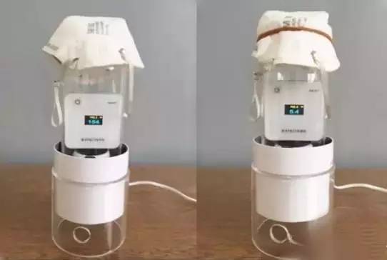 通電后,風(fēng)機轉(zhuǎn)動時帶動氣體向下流動,將口罩套在入風(fēng)口,在風(fēng)機的作用下,氣體透過口罩從入風(fēng)口進入測量腔中,分別測量通電前PM2.5濃度和口罩過濾后的PM2.5濃度。